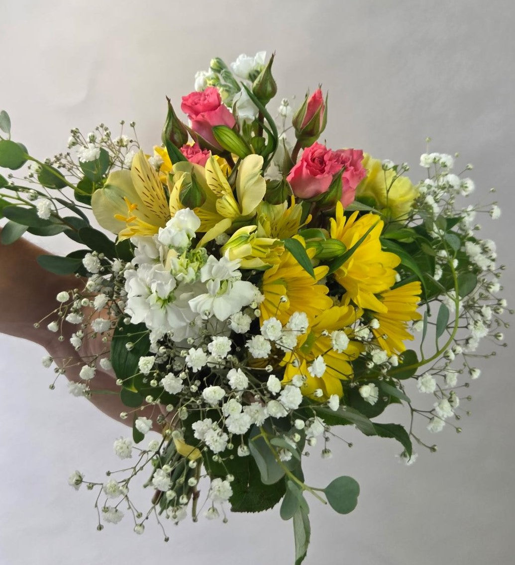 We gathered handfuls of wildflower looking blooms for this hand held bouquet