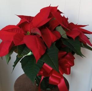 Start the season right. Send a classic red poinsettia wrapped in green with a big red bow.